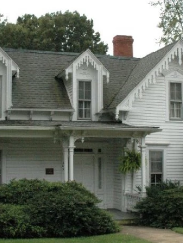 In 1868, John married Mary Polly Honeycutt Brattain (1846-1926). They moved to Davidson in the 1870s, where they raised ten children. The fancy design of the Brattain House served as much as a three-dimensional advertisement for John’s construction skills as a residence. It worked, as he was soon hired by the Mooresville congregation of Coddle Creek Presbyterian Church to rebuild their sanctuary after a devastating 1884 fire. John also became active in the local community, serving as a trustee for the Davidson College Academy, one of the earliest schools in town. John was also a member of Davidson’s Board of Commissioners, Board of Aldermen, the Freemasons, and a founding shareholder of the Davidson Building and Loan Association. The house remained in the Brattain family until 1943.